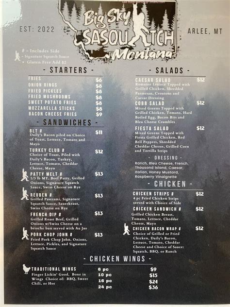 When ordering from the Big Sky Sasquatch menu, there are a few tips to keep in mind. Firstly, it is always a good idea to ask for recommendations from the staff. They are knowledgeable about the menu and can help you select the best dishes based on your preferences.